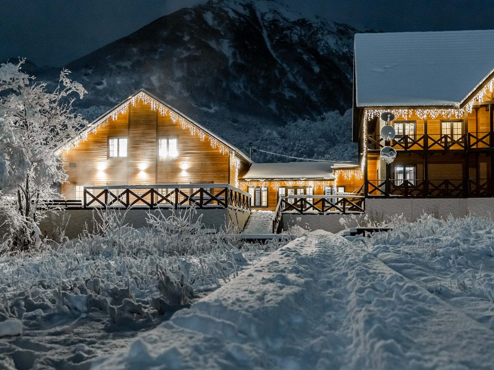 Ресторан нашего горного приюта дарит тепло и сытость в краю вулканов: в меню — все дары Камчатки от океана до тайги (от камчатского краба до оленины) и любимые европейские блюда, приготовленные с душой и видом на заснеженные вершины.